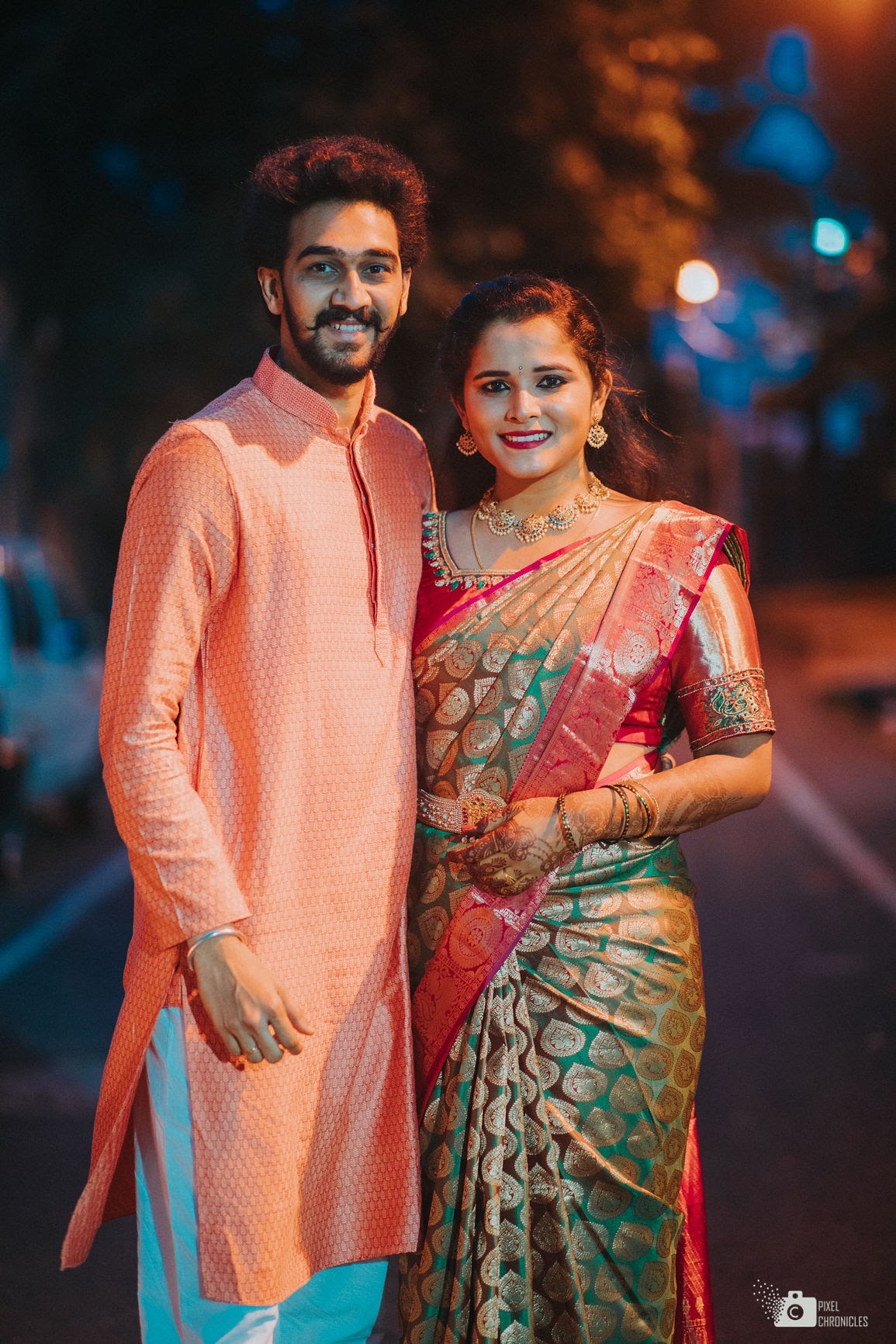 Even so, they ended up with 100 guests from both sides. The wedding took place at Saligrama party hall near Sita Circle, Bengaluru. Everything went smoothly, and the families took all necessary precautions keeping Covid in mind.