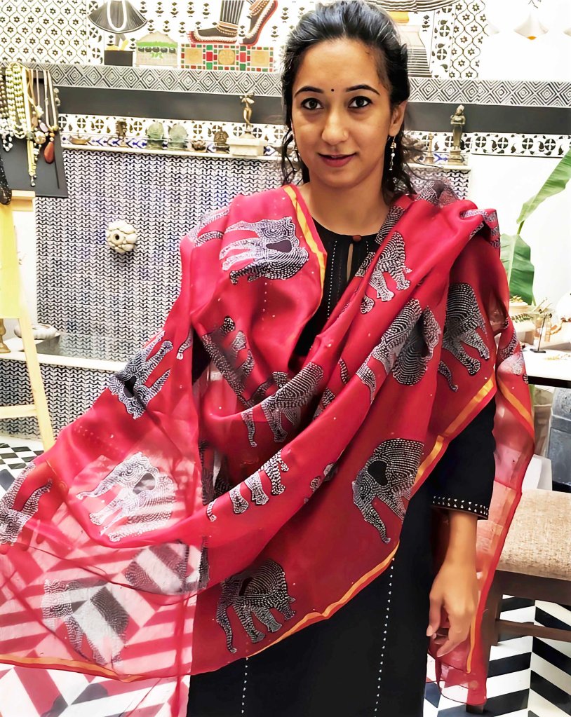 Recalling the time she used blocks for the first time in college to imprint an image on paper, she admits how she loved the process. “I was so fascinated with the hand-printing medium that exploring the world of textiles was probably a natural progression for me.”