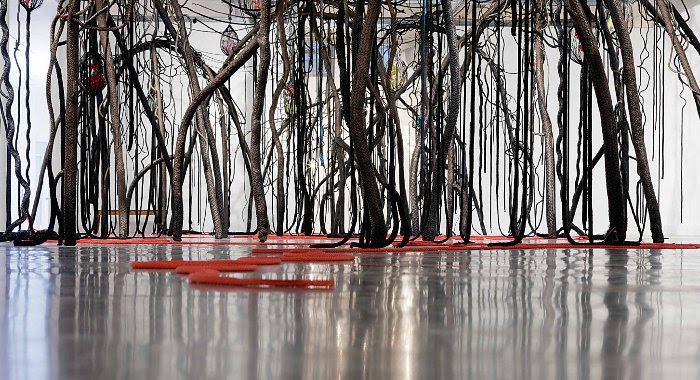 Rising from the floor to tower eight feet above the ground, this thicket of abstracted mangroves is meant to enfold viewers and evoke what it feels like to be within the dense tangle of roots that characterise actual mangrove forests. The festival is pricing Lehr’s Mangrove Labyrinth at $275,000.