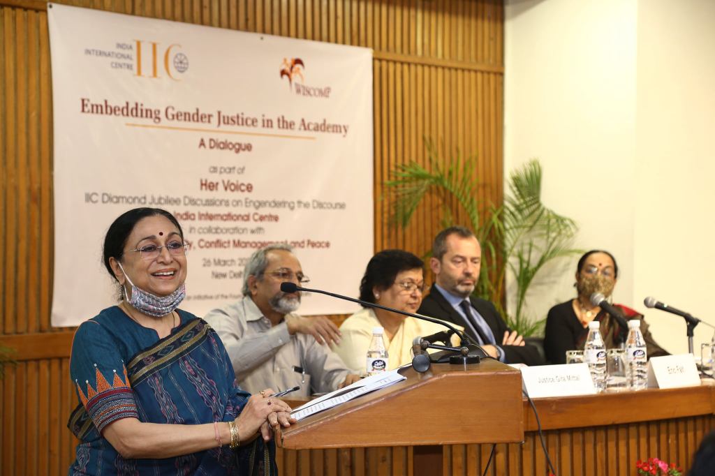 Dr Meenakshi Gopinath speaking at a dialogue on ‘Embedding Gender Justice in the Academy’ on 26 March 2022 at India International Centre, Delhi, where the Handbook was also introduced