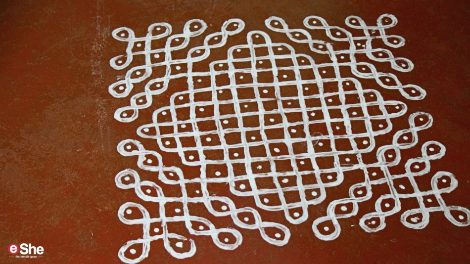 Emeritus Professor of Mathematics at Ithaca College, Marcia Ascher notes how women of Tamil Nadu (also Andhra, Telangana and some in Karnataka and Kerala) sweep their thresholds every morning, sprinkle them with a solution of cow dung and water and cover the area with elaborate symmetrical figures using rice powder.