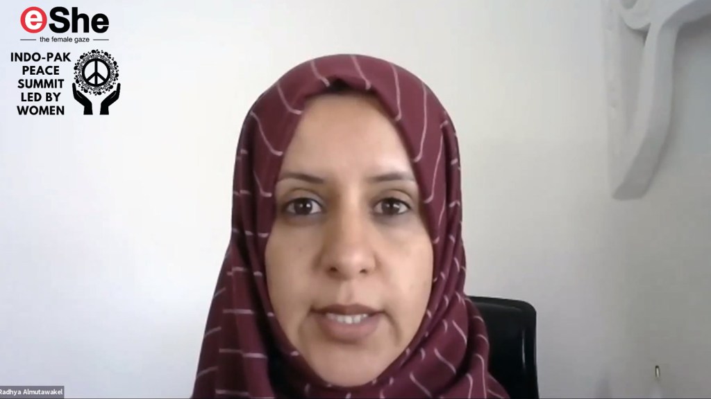 Award-winning Yemeni human-rights defender Radhya Almutawakel spoke at eShe Indo-Pak Peace Summit Led by Women this month on the role of women in peace-building.